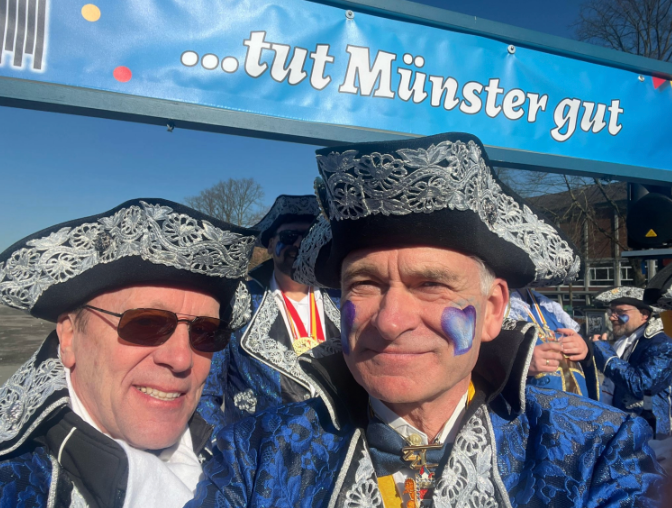 Wie üblich blieb der Straßenkarneval in Münster politisch hinter dem rheinischen zurück, gleichwohl strahlten Närrinnen und Narren an diesem Rosenmontag mit dem jecken Rheinland um die Wette – und tanzten zum „Wackelkontakt“ nach Hause. Tollitute Katharina Kroll rief Prinz Sascha zum Abschied zu: „Du hast so eine geile Session hingelegt.“ Und der sagte: „Einen besseren Rosenmontag kann sich ein Karnevalist gar nicht wünschen.“